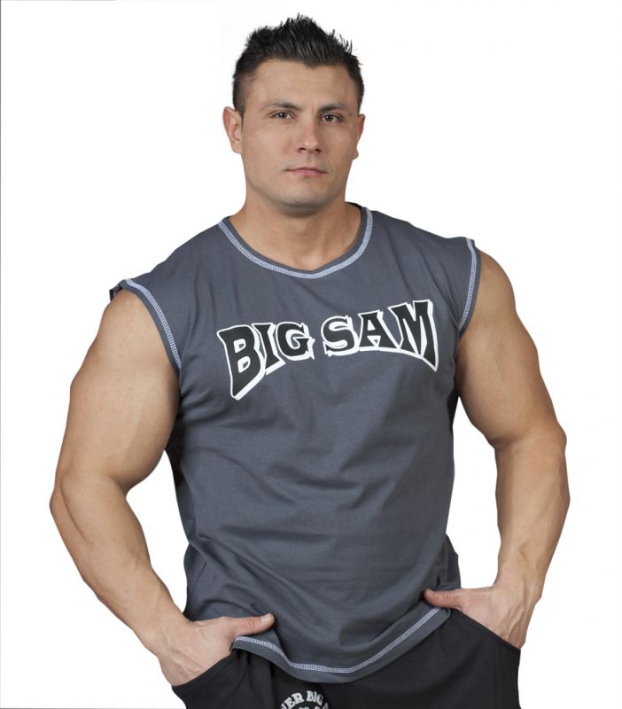 Безрукавки предпочитают носить те, кто занимается спортом, ведет активный образ жизни и имеет красивое тело, которое подобная одежда демонстрирует в привлекательном свете. Серый цвет данной модели является нейтральным, универсальным и подойдет любому. А принт с большой надписью названия торговой марки Big Sam выгодно выделит вас из толпы и заявит о вас, как о сильном и целеустремленном человеке.